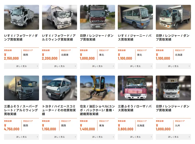 Webからトラック買取を申し込める業者は全国無料の出張査定に対応しており、豊富な買取実績をもとに専門知識を活かして相場に沿った適正価格で買い取ります。